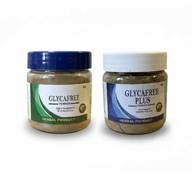 Glycafree Composition: amla, baheda, bealgiri, harde, jamun, kalonji, karela, methi, neem chhai, daru haldi powder